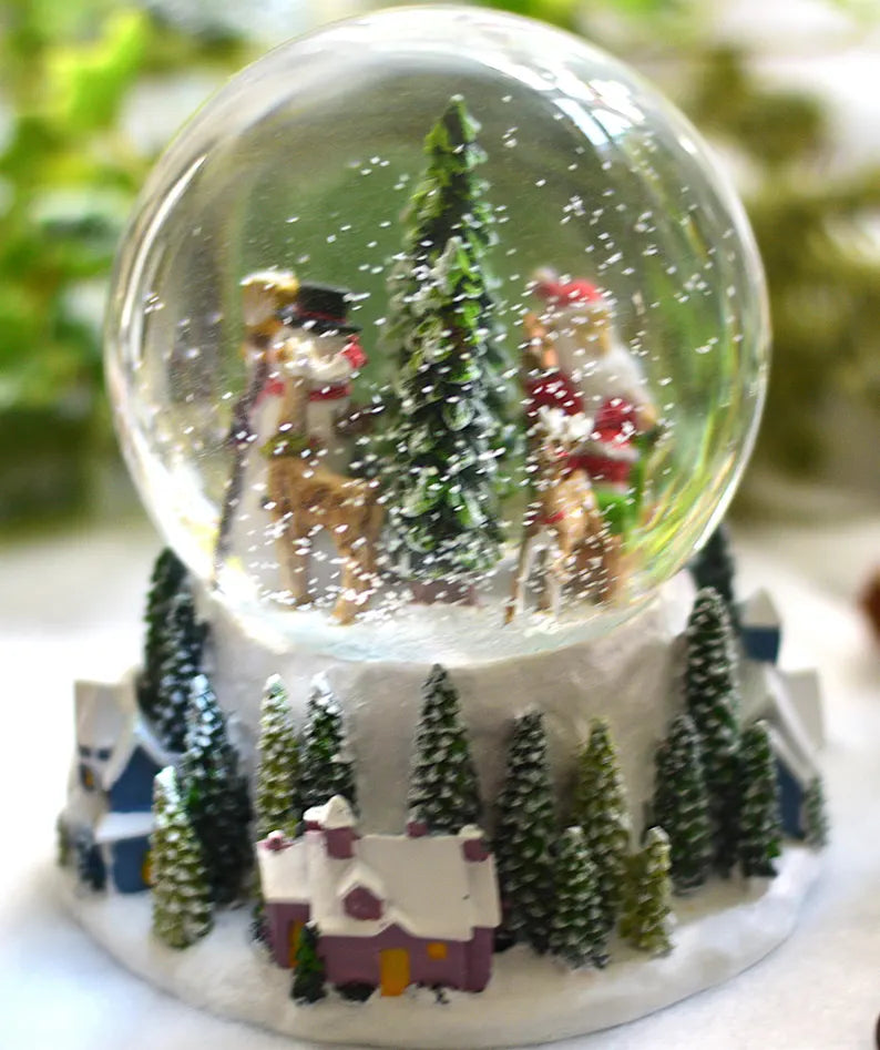 Adding to the magic, the snow globe includes a music mechanism underneath the base, playing a classic Christmas melody that fills your space with festive cheer.