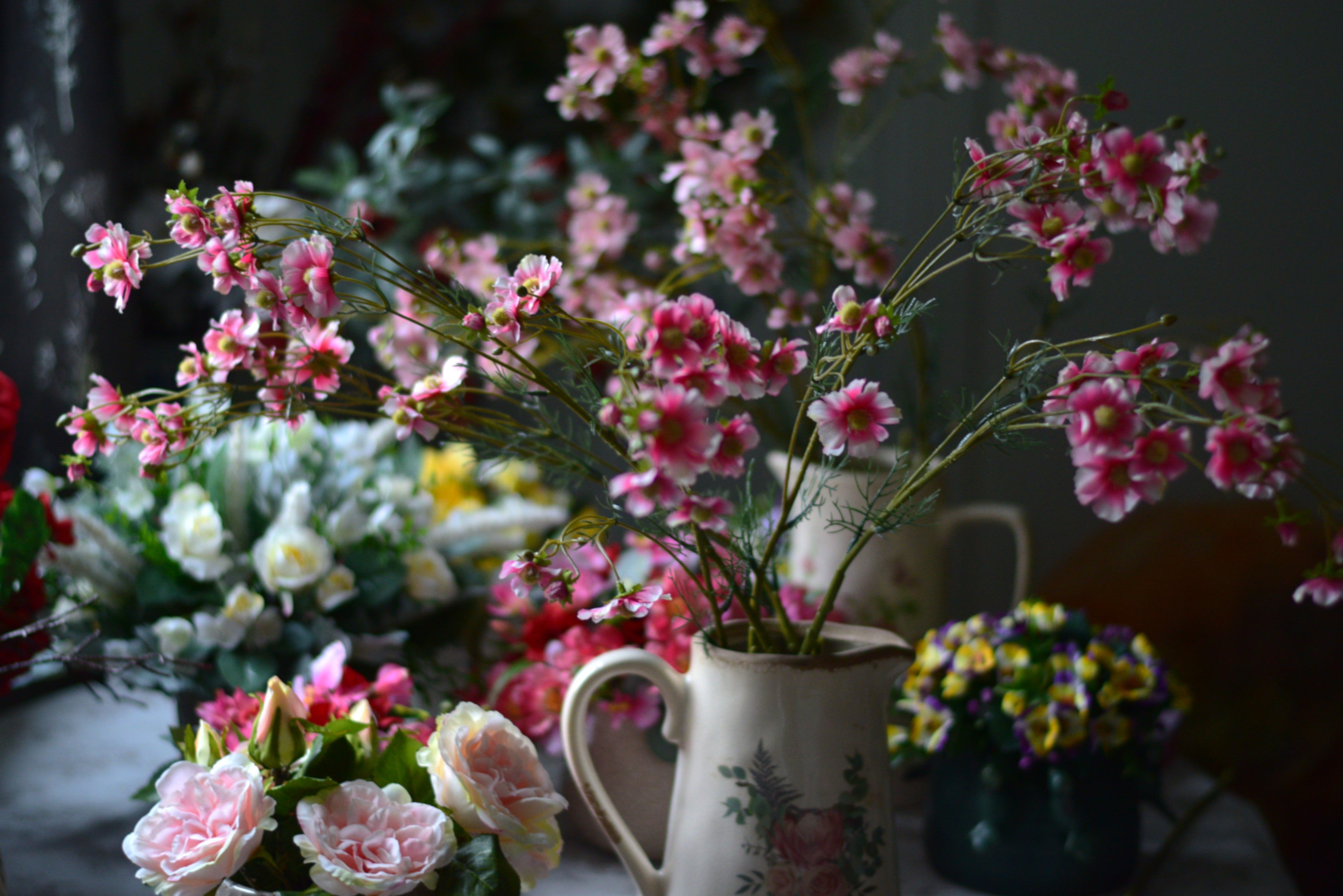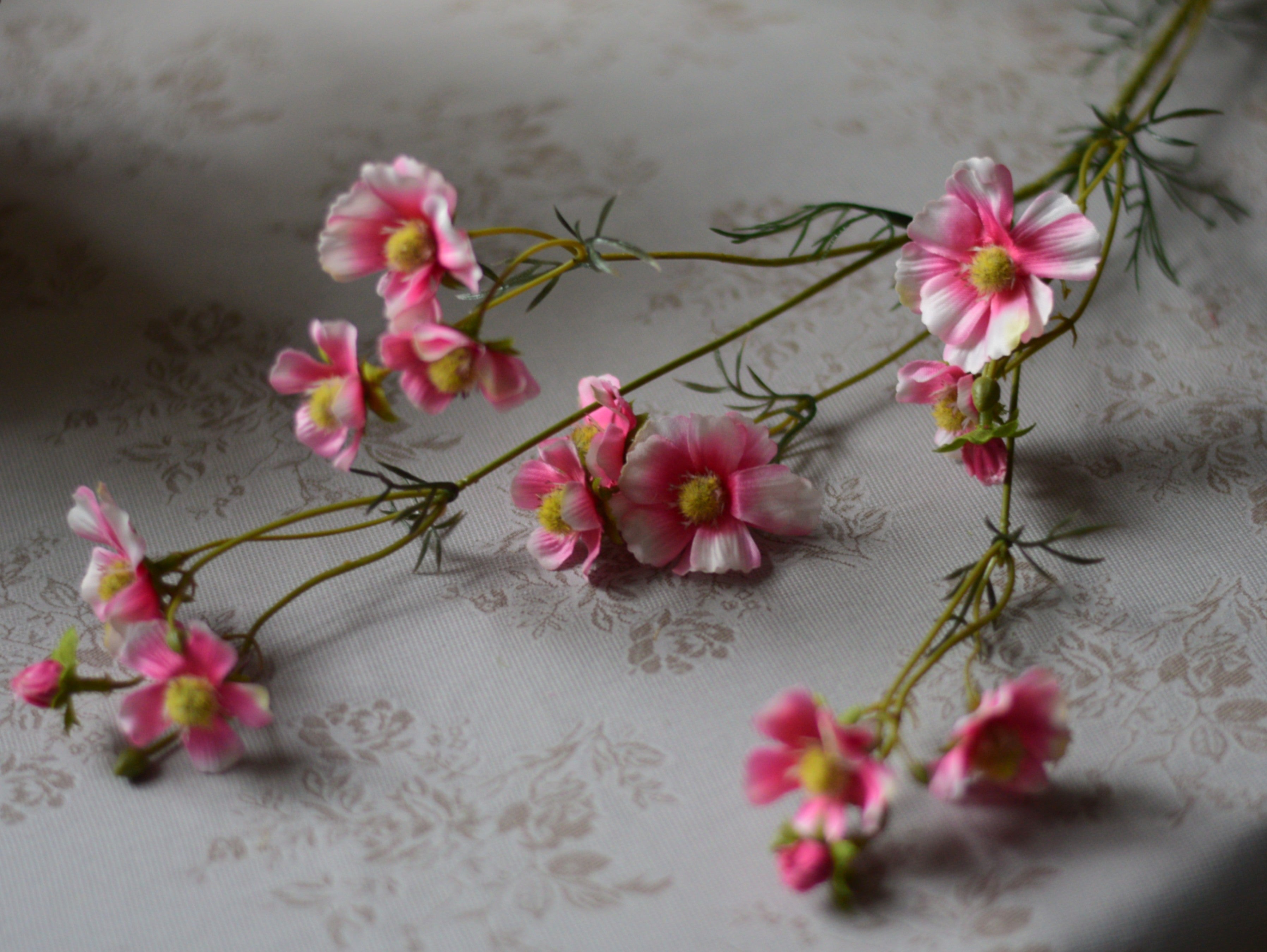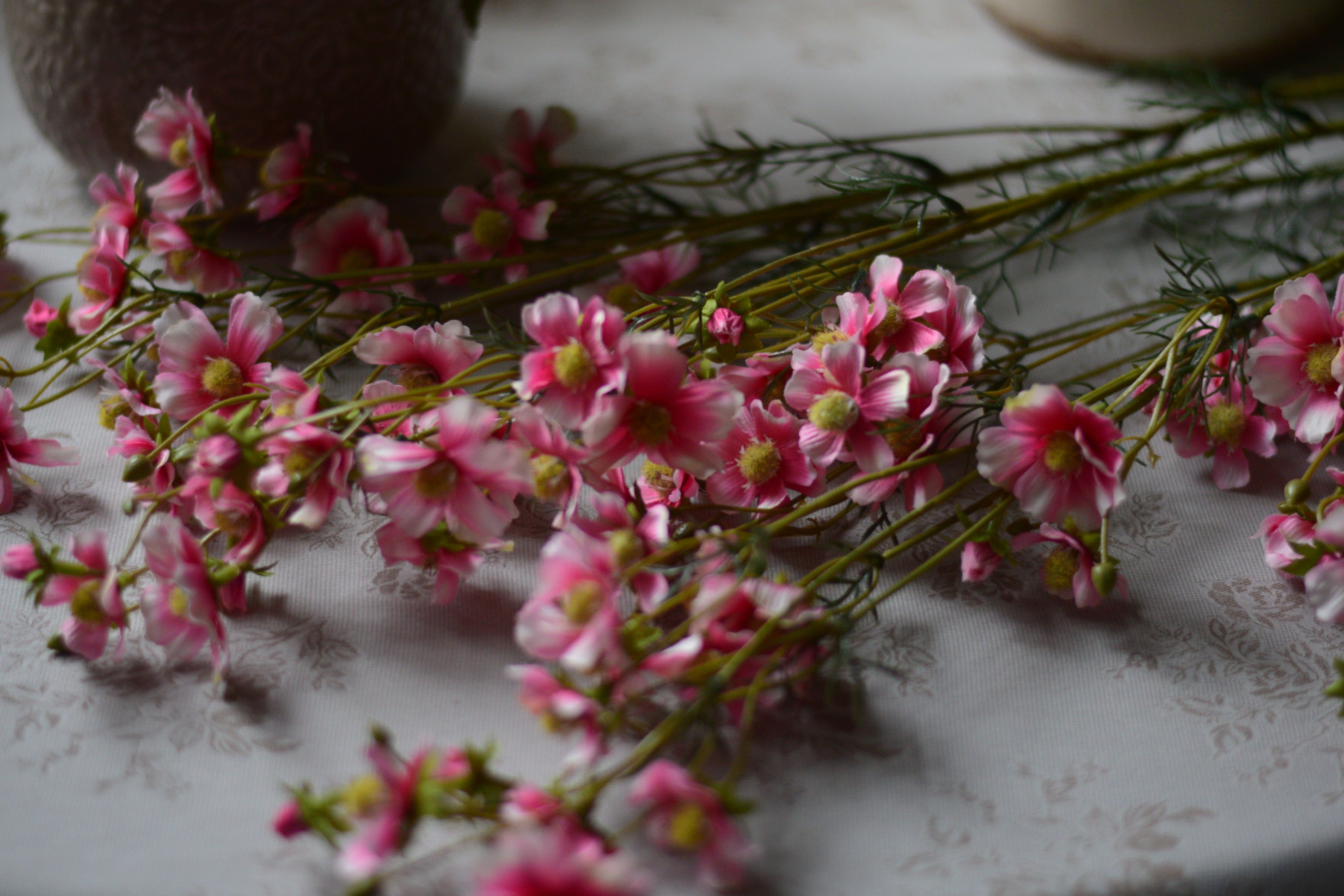 These cosmos faux stems are thoughtfully crafted to capture the charm of freshly picked blooms. Each flower blends rich dusky pink tones at its heart with soft, pale edges, finished with a gently textured centre that adds depth and realism.