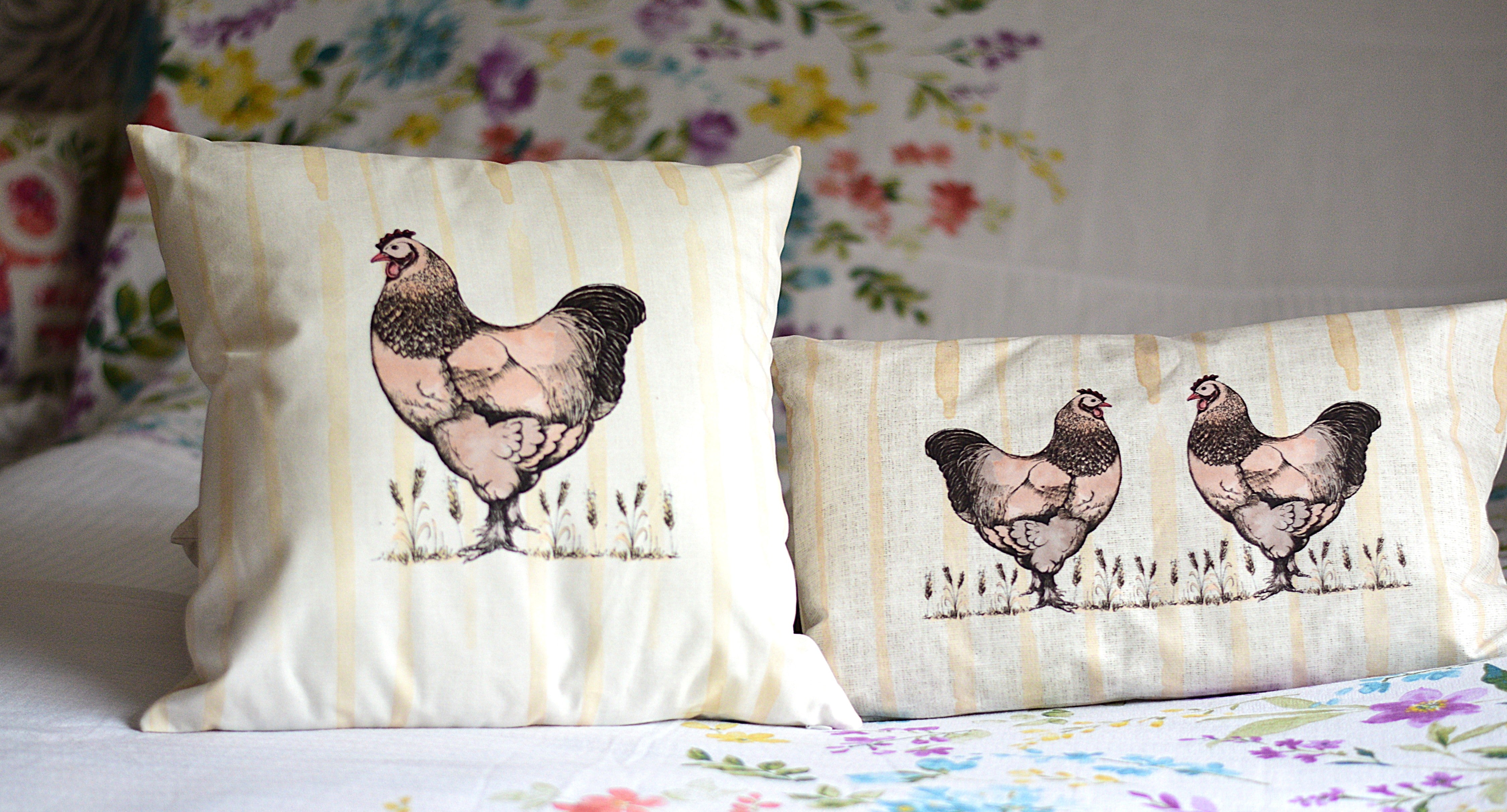 The front features the detailed hen motif, while the reverse is plain, keeping the look practical and easy to live with. Available in two sizes, these cushions are made for everyday use — at home in everyday spaces with a relaxed farm-style look.