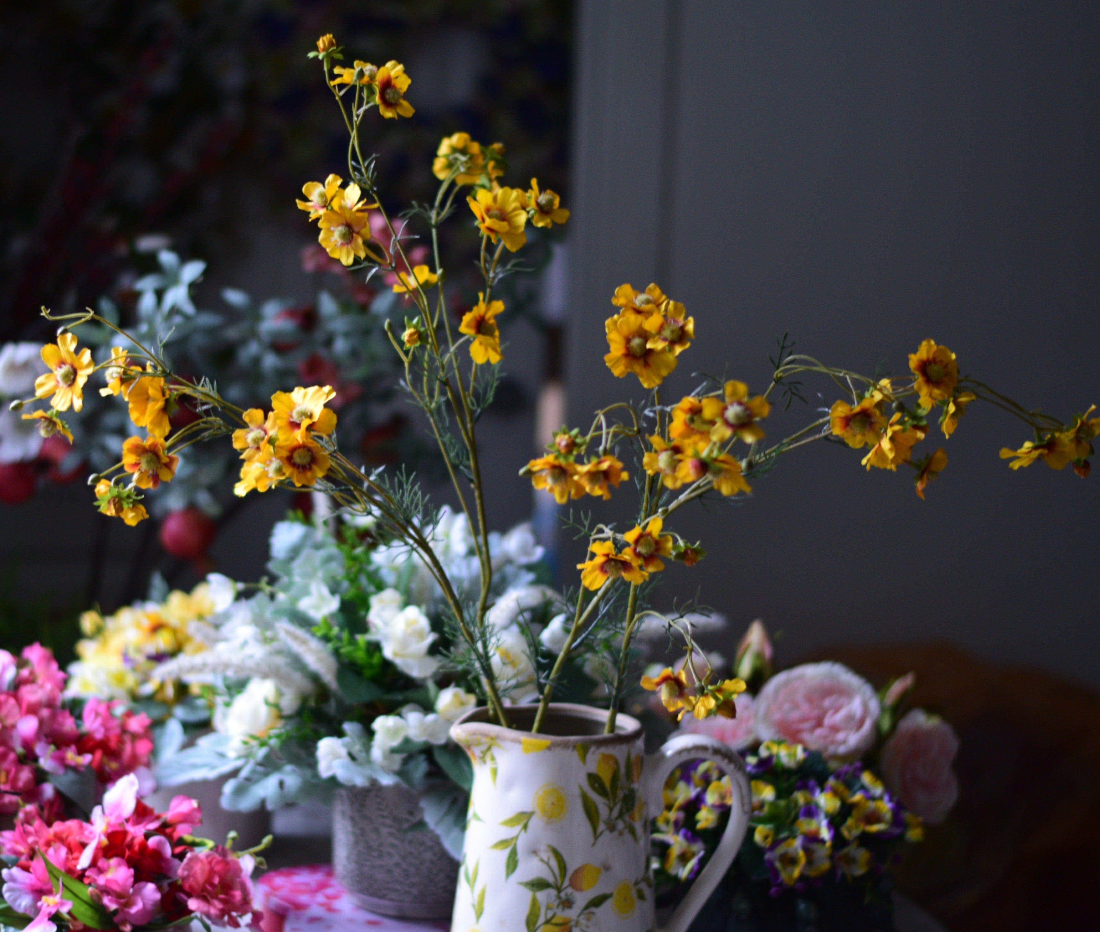 The stems can be bent very easily, so they are suitable for any vase, from small to tall, but vintage-style pitchers are best, as they keep the cottage spirit alive. Mix with another colour of coreopsis to have a full-bloom cottage garden inside your home.
