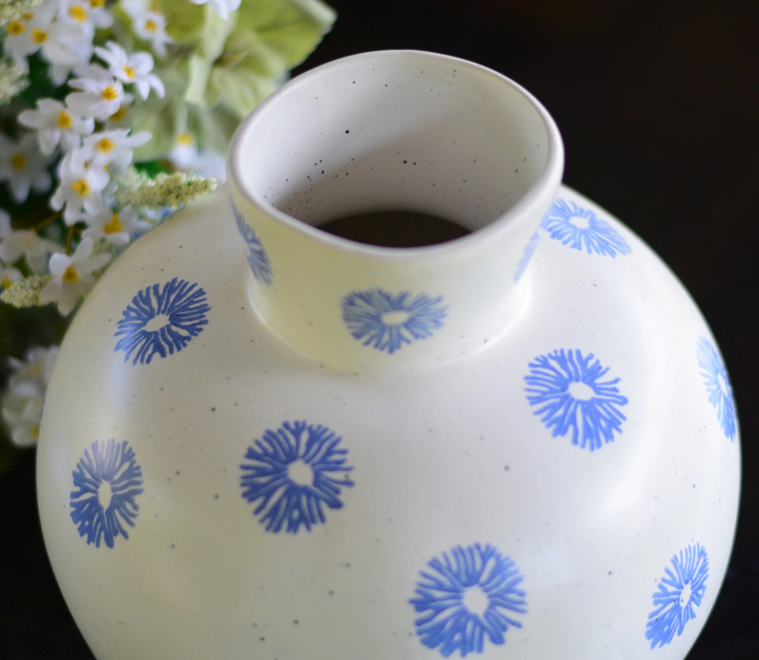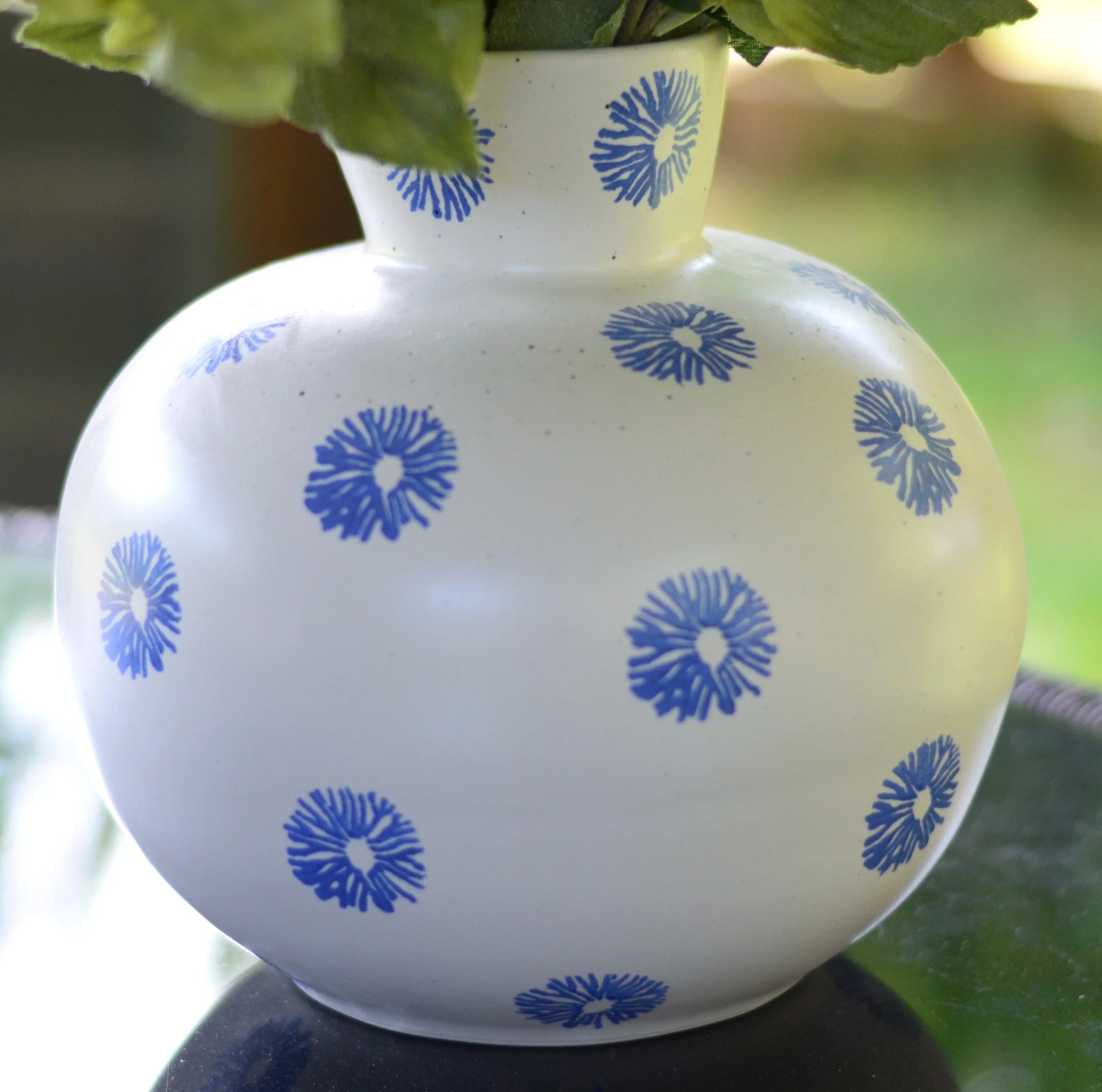 Stunning ceramics adorned with brilliantly painted blue dandelions. Ideal for displaying your favorite fresh flowers, whether artificial or dried, or as a stunning work of art!