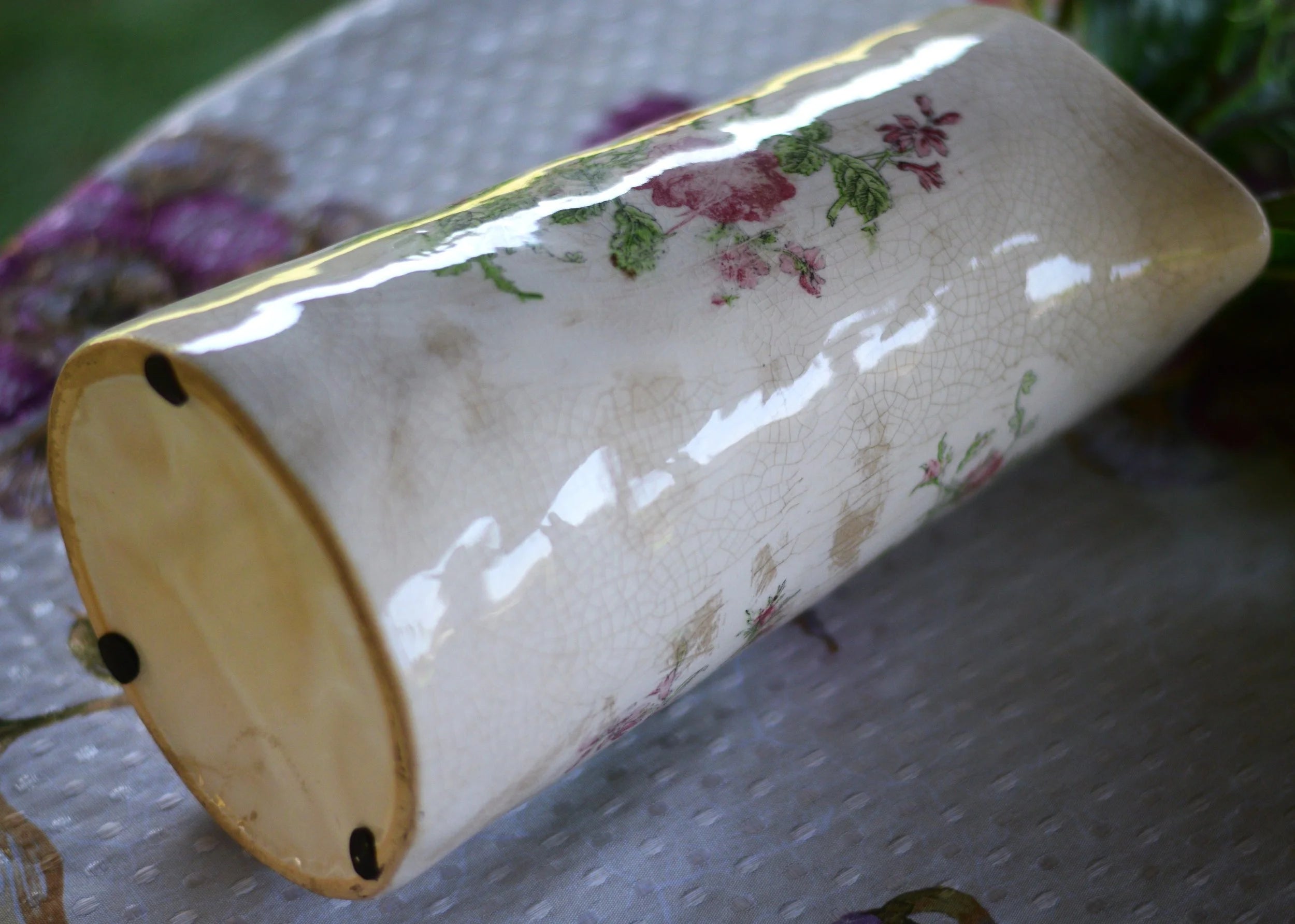 Tall vintage-style jug with a timeless, rustic charm. Featuring weathered details, slight discoloration, and a beautifully uneven surface, it exudes an authentic aged aesthetic. Pictured with faded red roses and green leaves, it enhances the vintage feel, adding a touch of old-world romance.