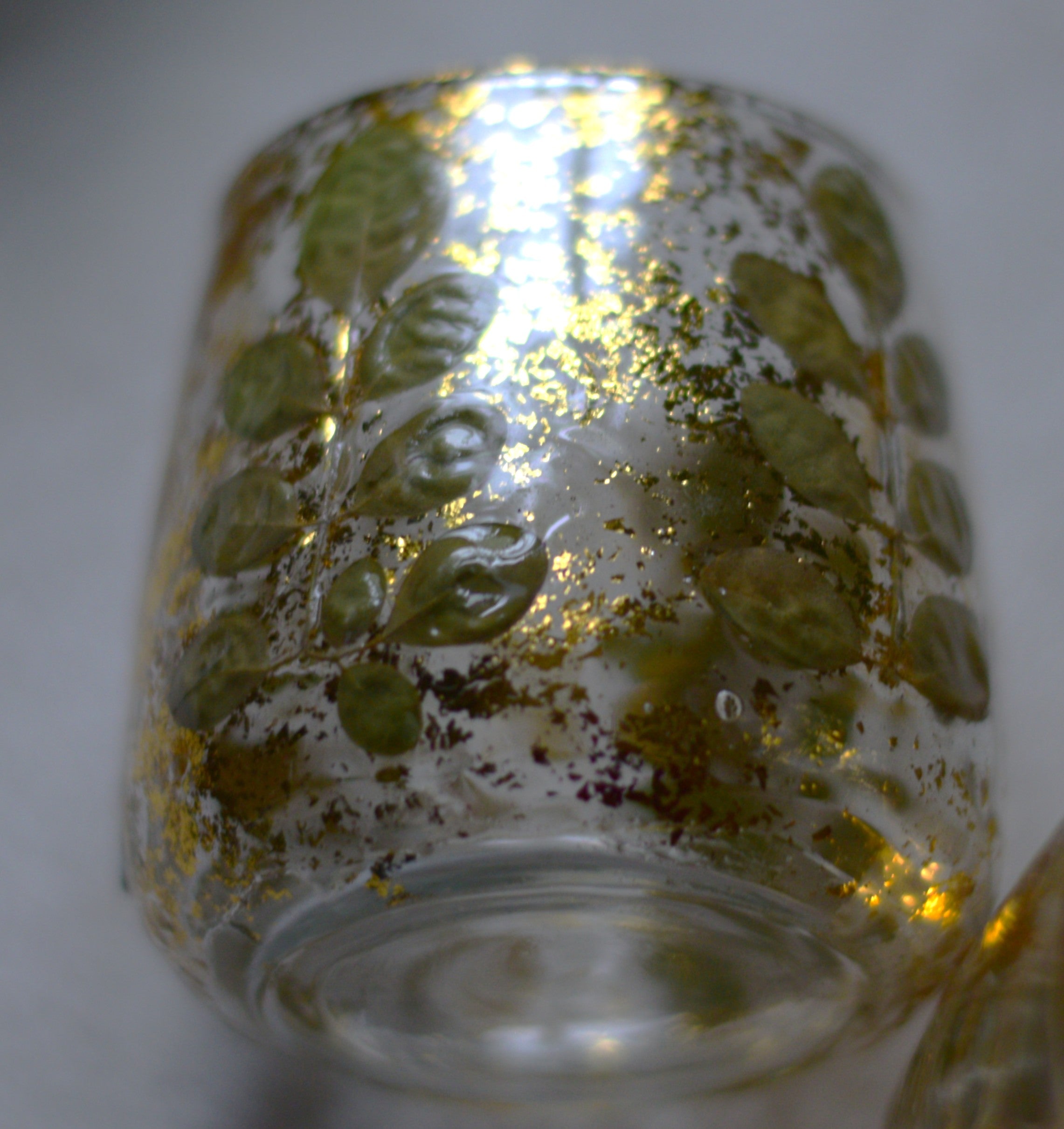 Bring the delicate beauty of hand-pressed leaves into your home with these uniquely shaped glass candle holders. Each leaf’s natural colors are highlighted by shimmering golden accents, while the gently curved, irregular forms add a rustic, handcrafted charm. They cast a warm, enchanting glow with tealight candles, or simply shine on their own as a striking decorative piece.