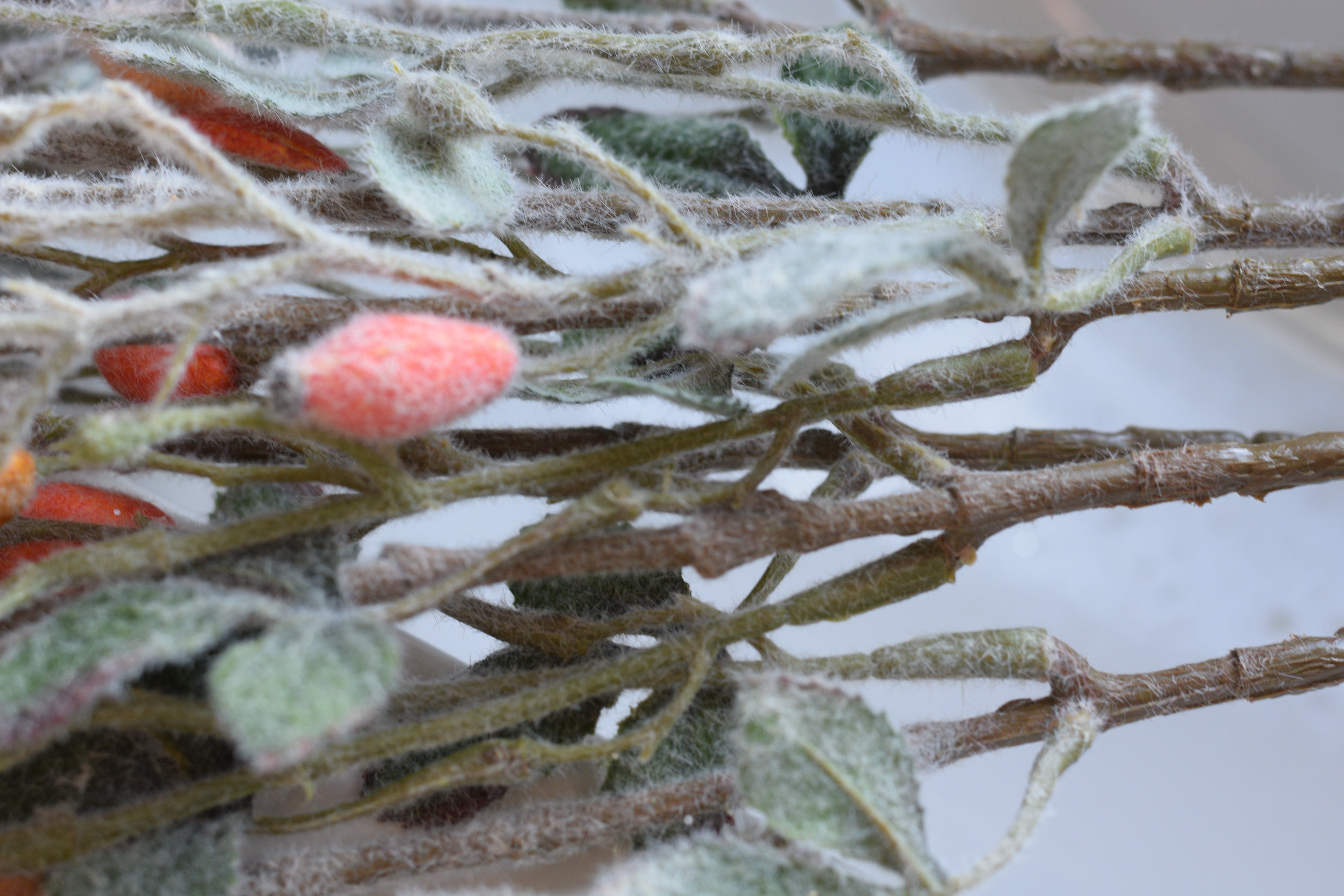 The Faux Frosted Rosehip Spray stands at an impressive 79 cm tall, beautifully designed to capture the essence of winter. This elegant branch features realistic rosehip berries, each delicately coated with an imitation frost, creating a soft, frosty layer that mimics the look of winter's touch.