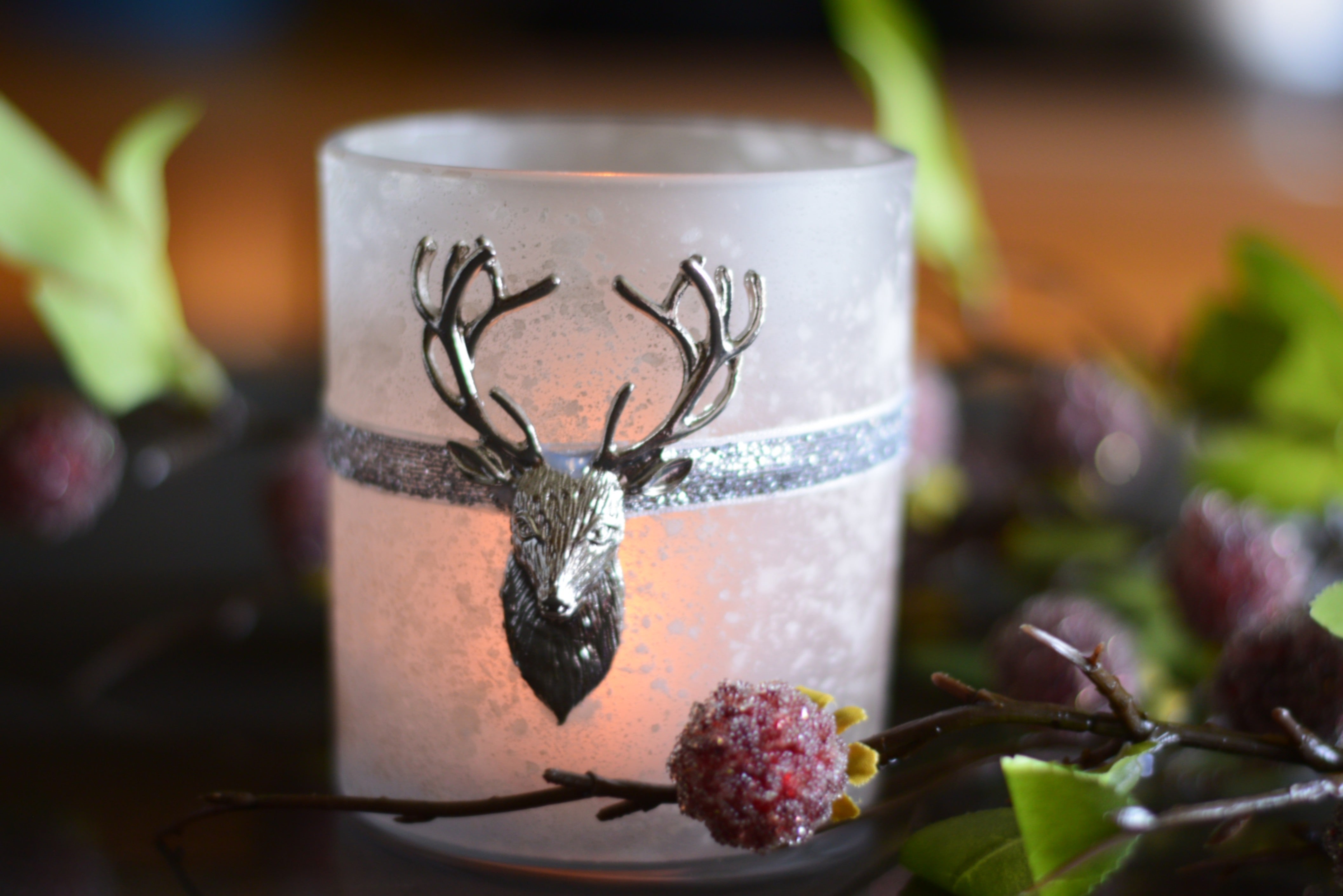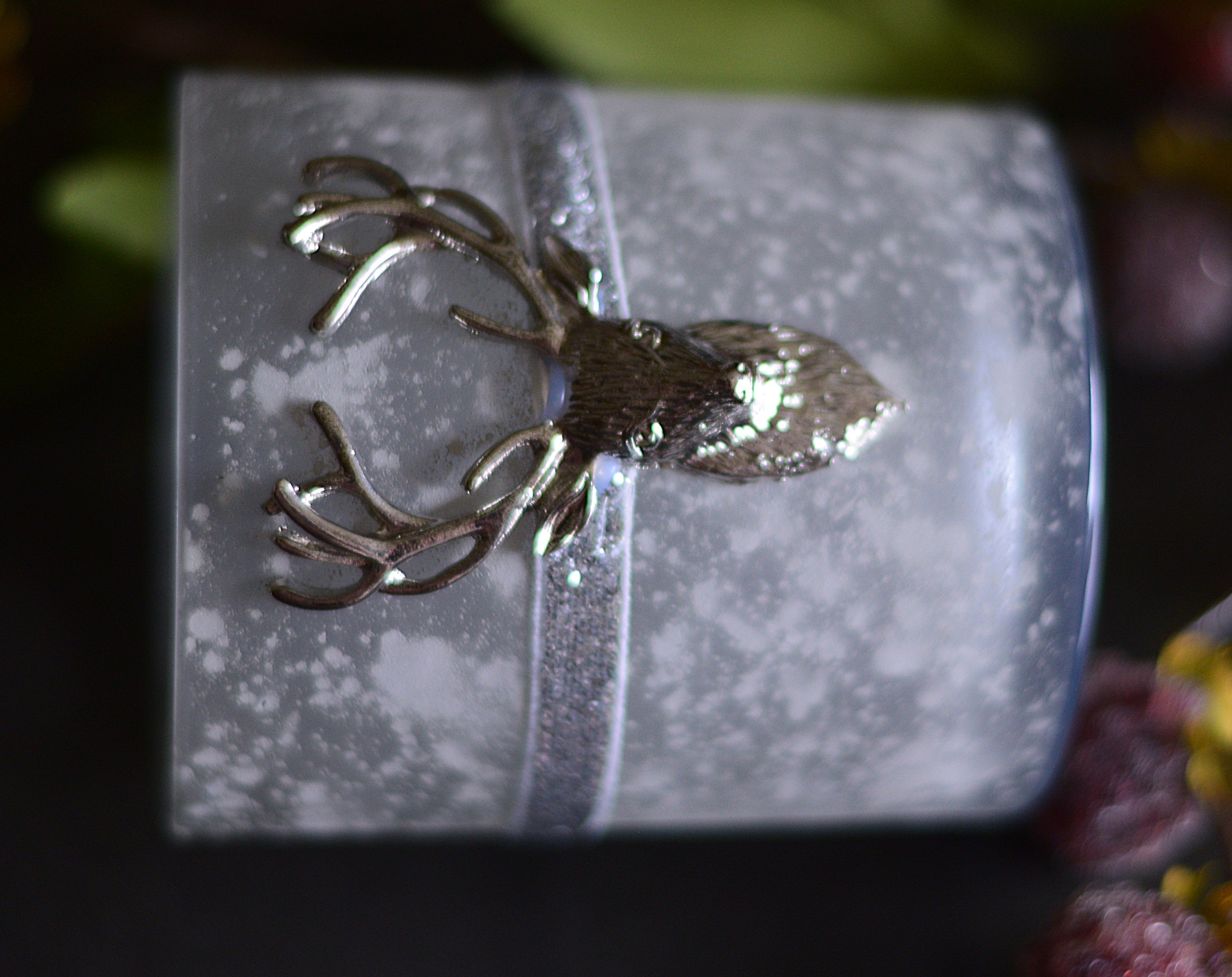 Elevate your décor with this luxurious White Frost Stag Candle Holder. This stunning glass candle holder features a beautifully frosted white, soft grey-toned finish, elegantly complemented by a sleek silver stag decal for a touch of sophistication and seasonal charm.