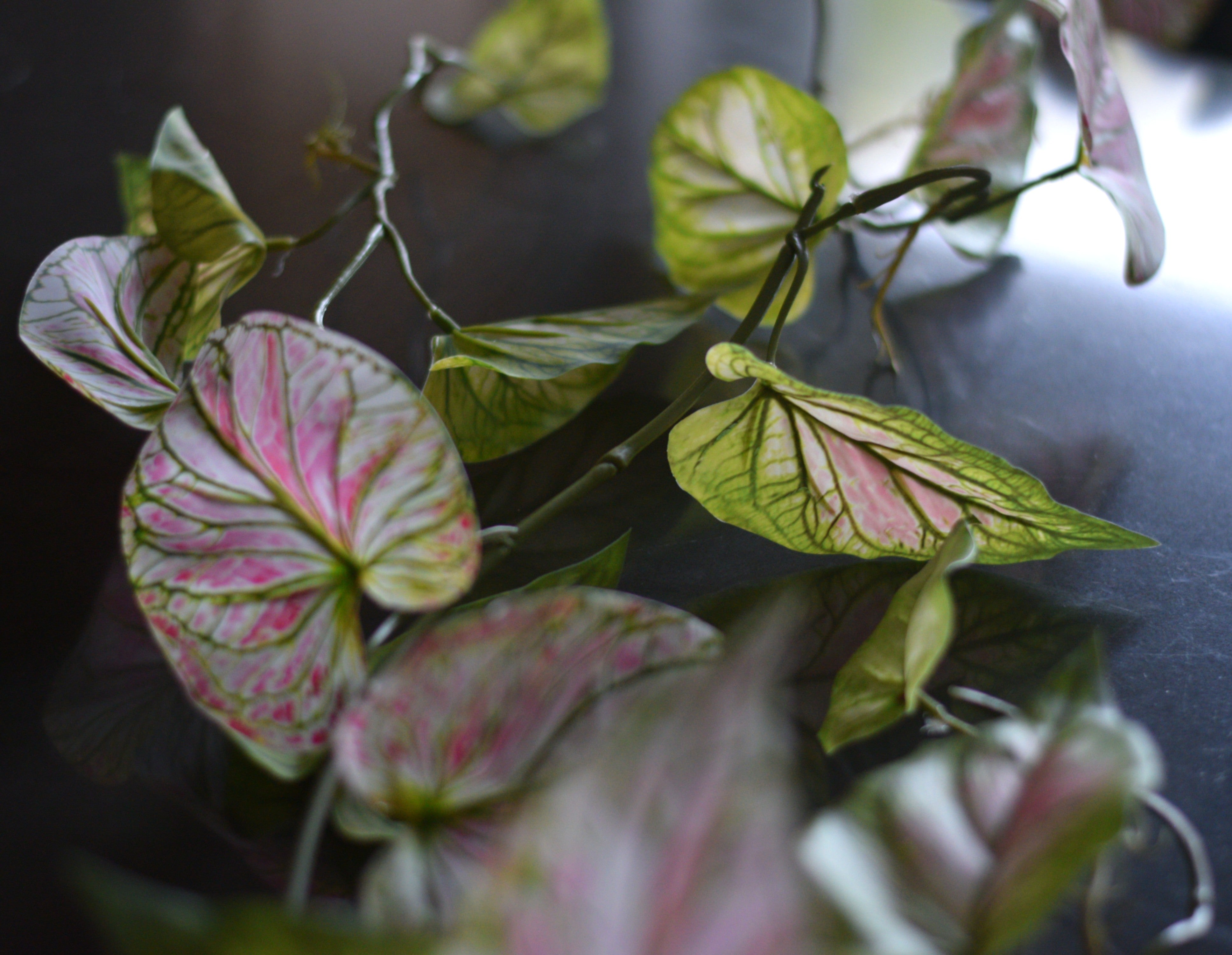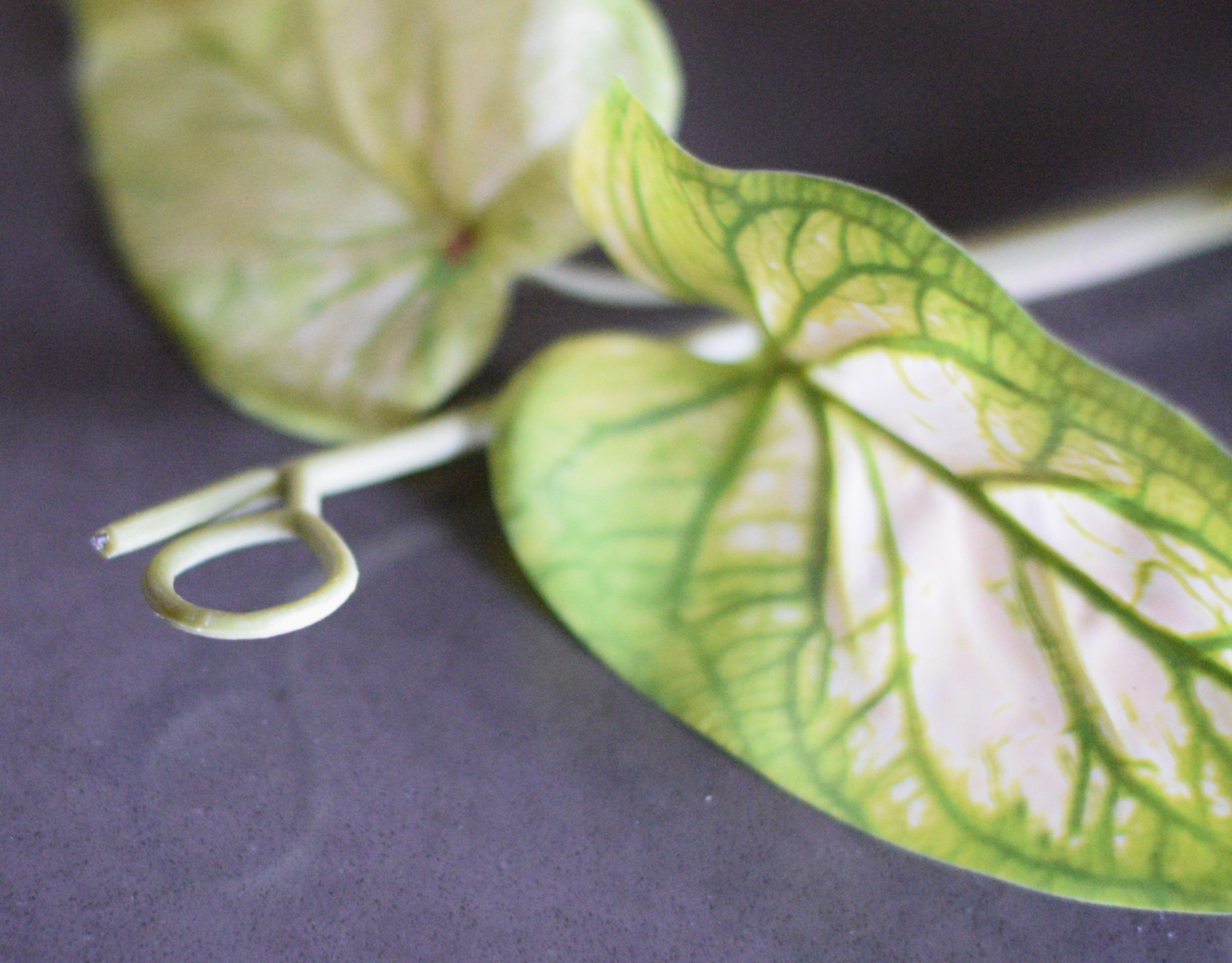 What makes this Caladium especially realistic is the thoughtfully designed stem detail, which mimics the look of new roots beginning to grow along the stem — a subtle touch that adds depth, texture, and authenticity. It brings the charm of a living plant without the need for care or maintenance.