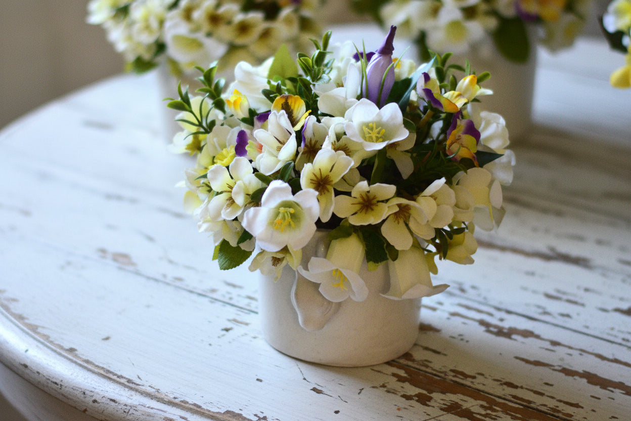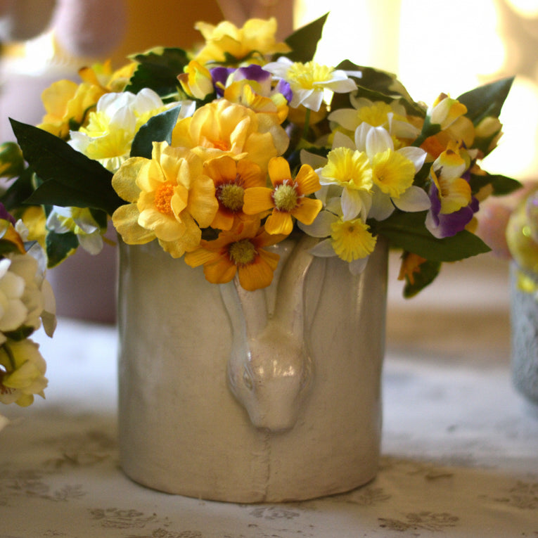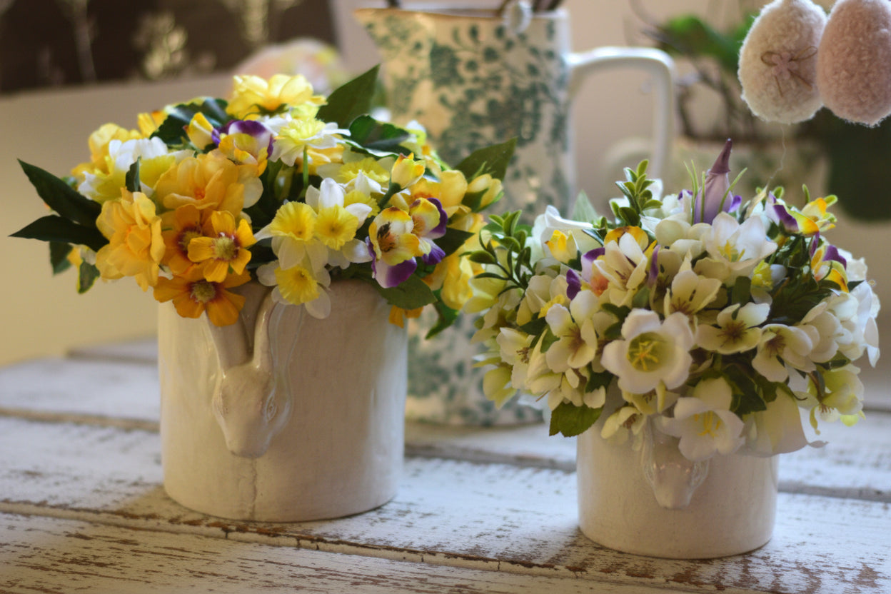 Cottage Bunny Pots with Faux Spring Flowers