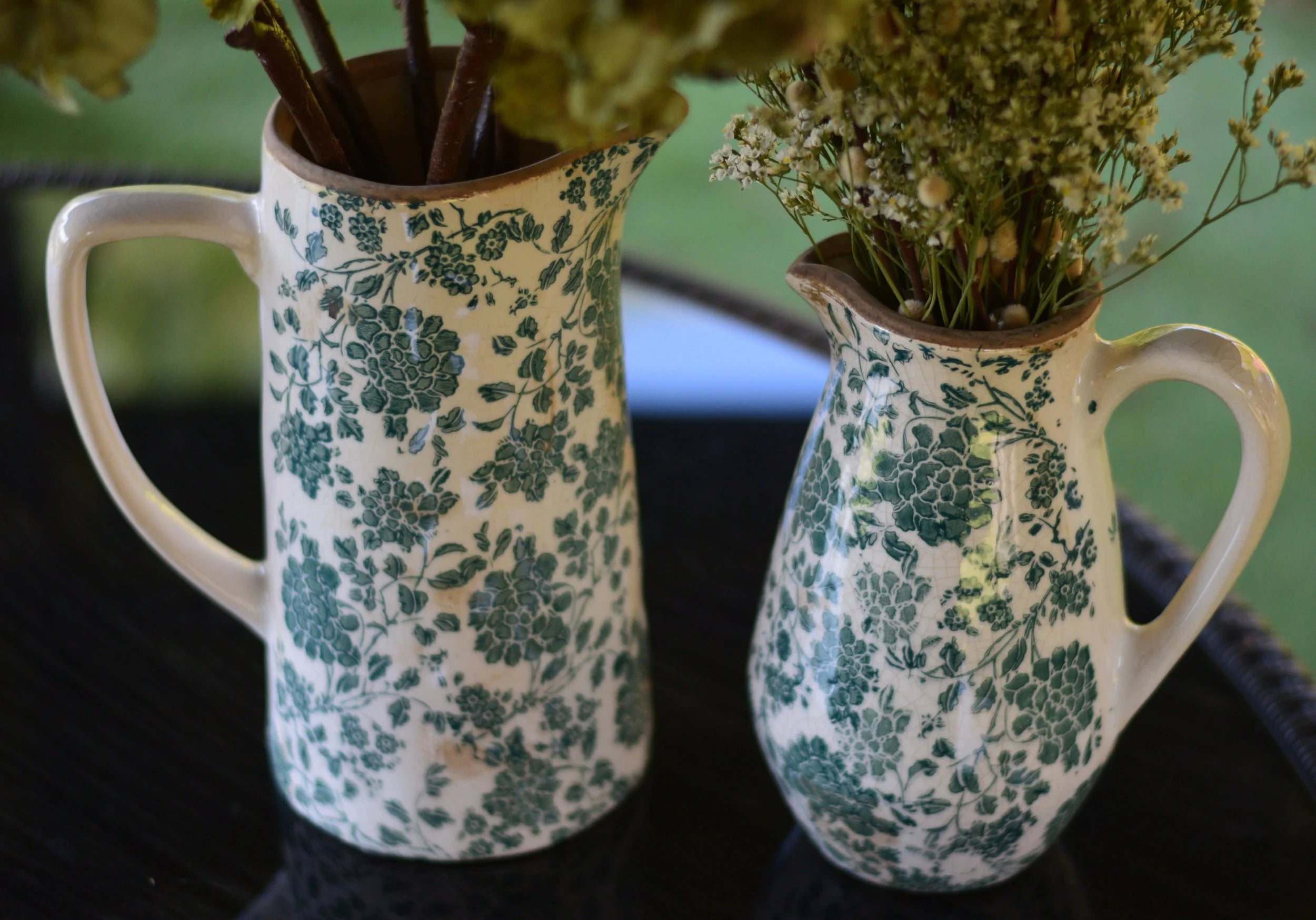 Please note: These jugs are for decorative use only and are not suitable for holding water. A perfect choice to enhance the ambiance of your home with their vintage flair!
